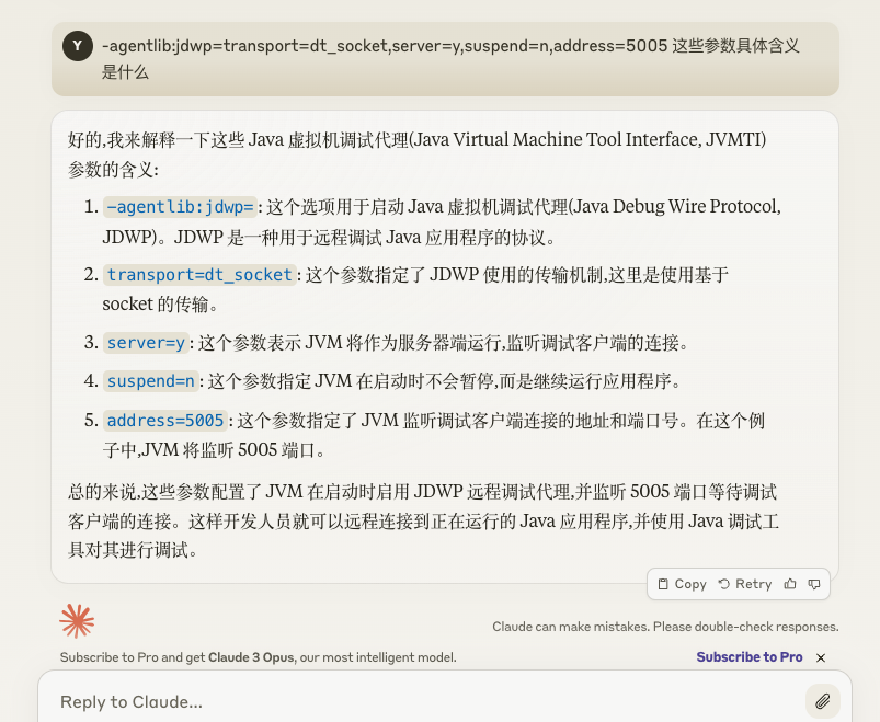 -agentlib:jdwp=transport=dt_socket,server=y,suspend=n,address=5005参数的具体含义